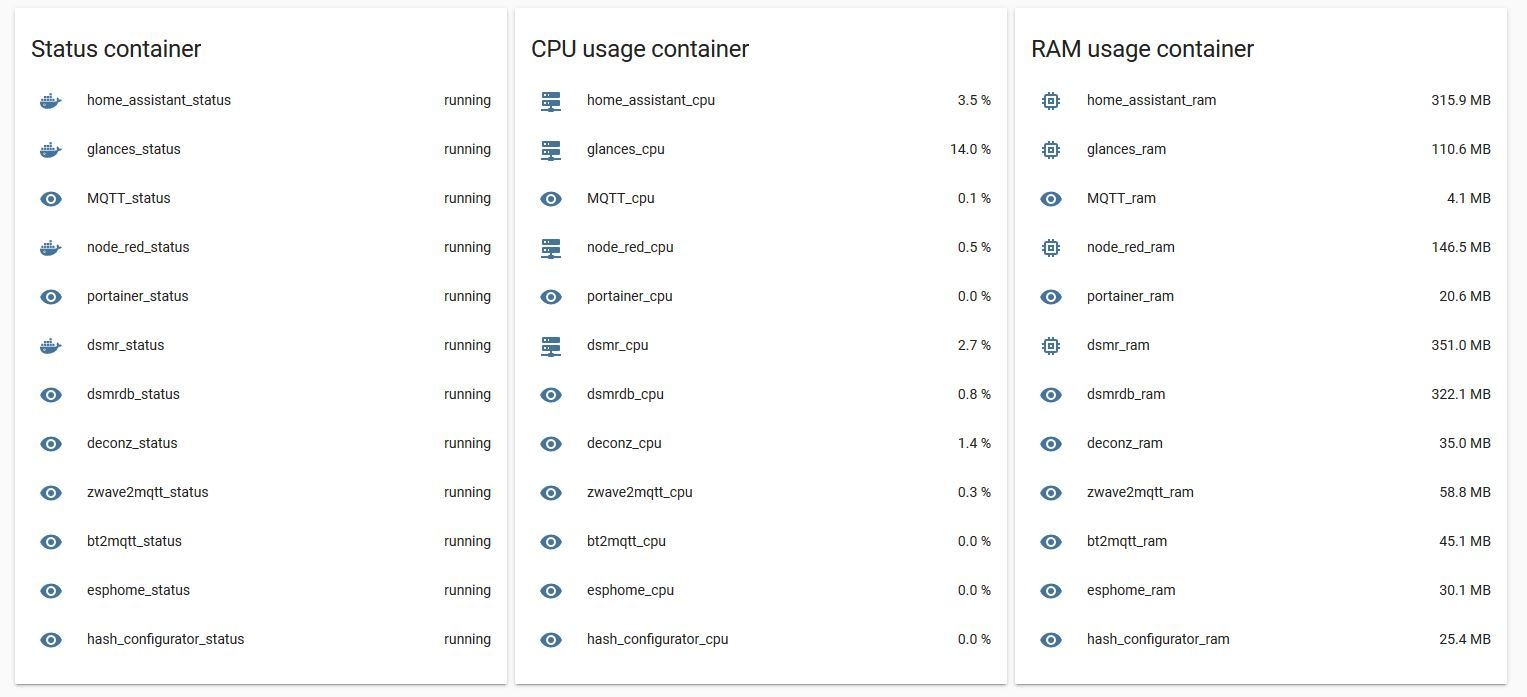 Ik heb in node-red nu een scriptje gemaakt die automatisch alle docker gegevens uitleest en de status (running / down), cpu verbruik en ram verbruik via MQTT op de bus zet.