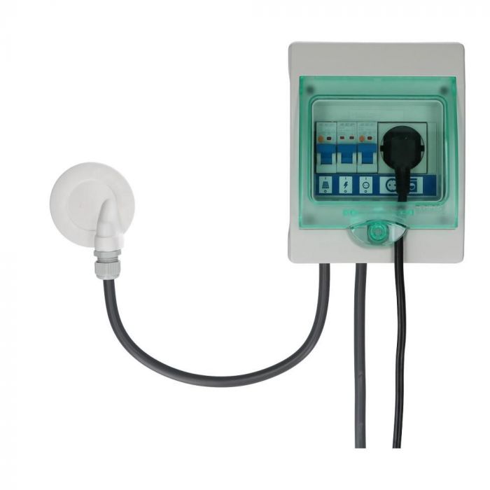 Verder is voor het kastje voor de PV scheider een goedkoop kastje gebruikt dat aan alle kanten open staat en waar ik bezwaar tegen heb genaakt in verband met plaatsing inde nabijheid (20cm) van een kraan.Ik heb gevraagd om plaatsing van een spatwaterdichte kast voor de PV scheider; niet nodig volgens de installateur..