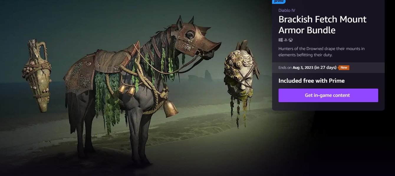 Met Amazon Prime heb je ook Prime Gaming, waarbij je de Brackish Fetch Mount Armor-bundel krijgt.