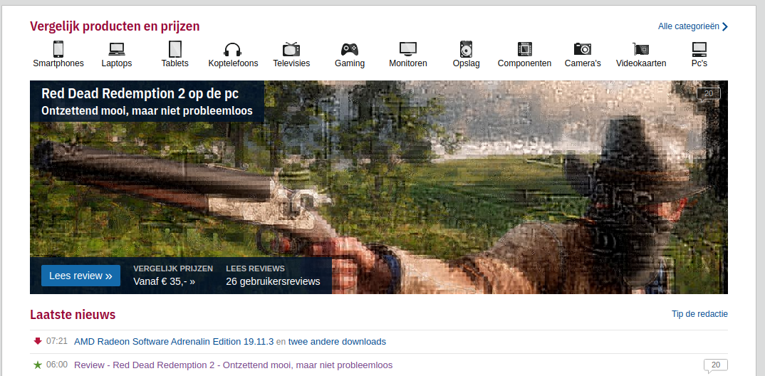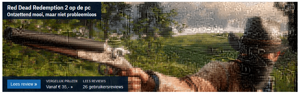 Op de frontpage heeft het artikel over "Red Dead Redemption 2 een nogal.... pixelig uiterlijk