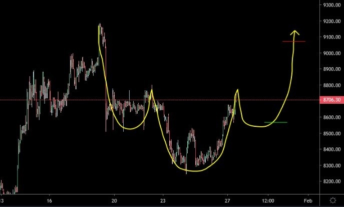 Ik twijfel heel erg, enerzijds word het sinds gister mega hard gepusht omhoog, andere kant hebben we afgelopen dagen al gezien dat die ook snel kan corrigeren. Vraag me nu af hoe dik de resistance is op 8800. Schiet die naar de 8900 binnen deze week of valt die eerst naar de 8500-8400 range.DAMAGE schreef op maandag 27 januari 2020 @ 13:38: