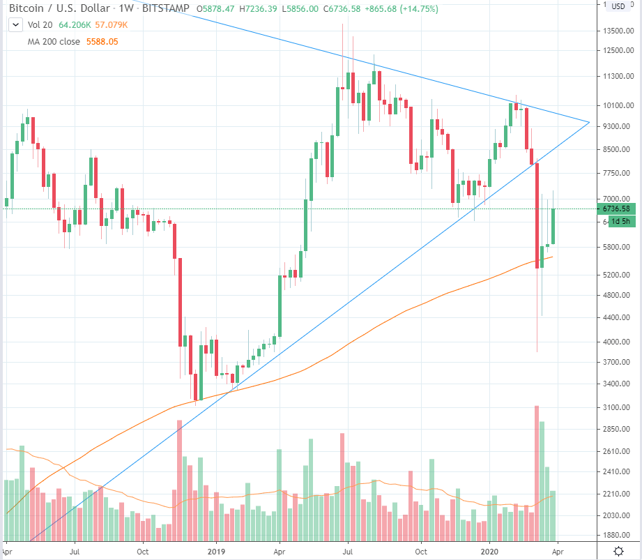 Of er volgt een enorme groene candle richting 8.400 (onderkant driehoek) in de komende 2-3 dagen of de 5.600 (200 MA) wordt opnieuw opgezocht. Aangezien het vrijdagmiddag / nagenoeg weekend is verwacht ik de positieve variant hiervan, maar goed om je plan voor beide opties (Bijv: Buy >7200, sell <8400 of inkopen rond de 5650) paraat te hebben en de orders daarop in te stellen. Tenzij je hodlt uiteraard....Tominatie schreef op vrijdag 3 april 2020 @ 14:01: