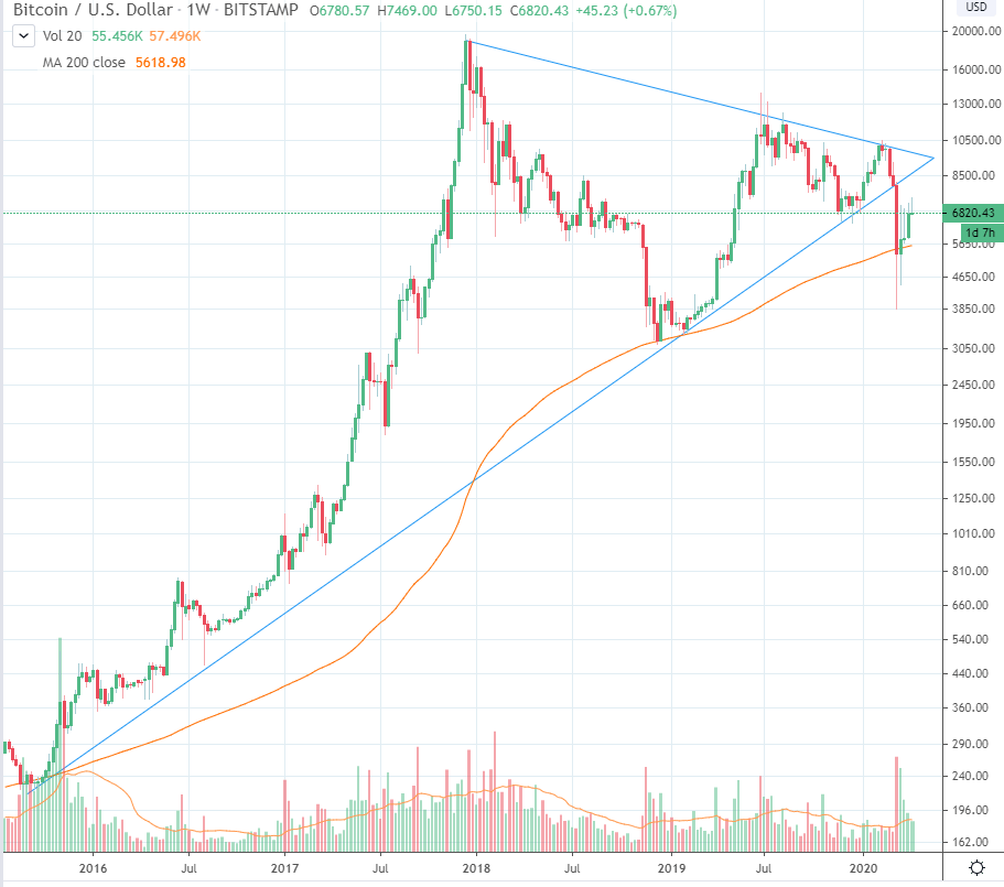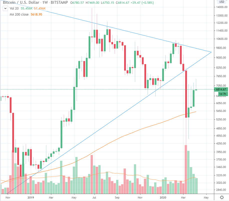 Ik vermoed dat BTC richting de 6682 gaat en daar gaat bouncen vanaf 2-6 april zijn daar een hele hoop wicks, dus wel aardige support.Taro schreef op zaterdag 11 april 2020 @ 23:17: