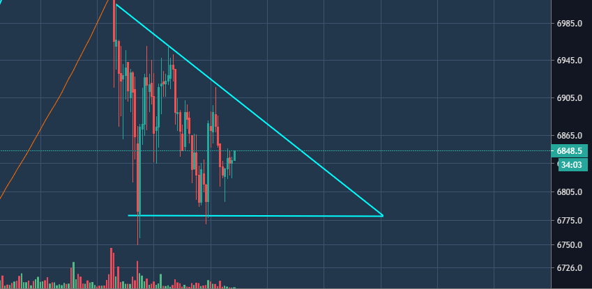 Deze keer geen short, maar een long geopend. Blijft vrij vlak onder de 6800 hangen, dus vermoed dat de 7-7.2k nog wel wordt aangetikt.