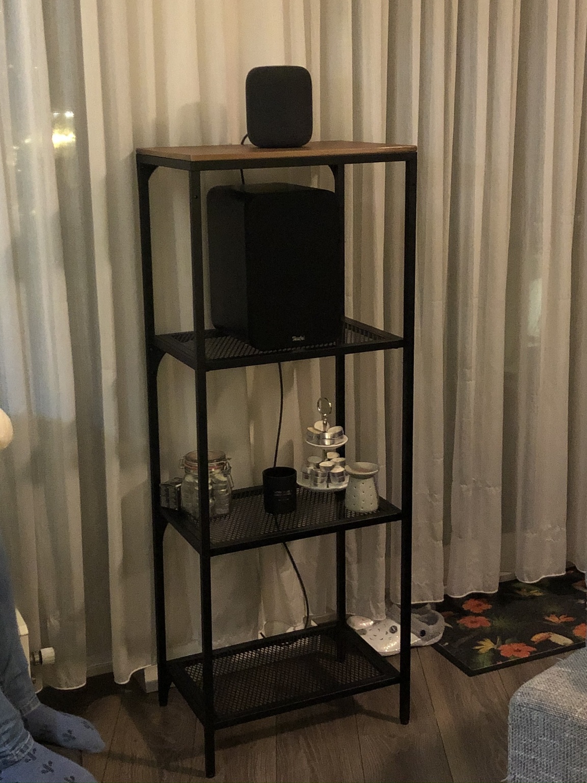 - Er wordt een Apple Homepod gebruikt voor achtergrond muziek.