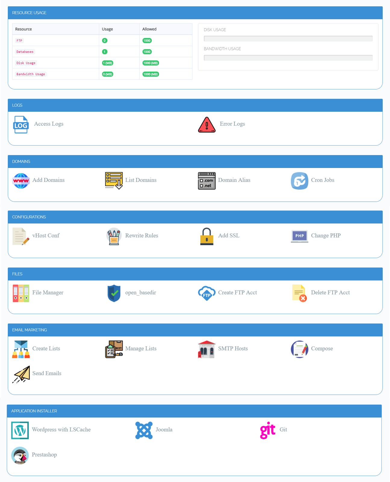 CyberPanel is een webhostingcontrolepaneel aangedreven door OpenLiteSpeed. CyberPanel werkt enkel op Centos 7.x en Ubuntu 18.04 en 18.10.Naast alle basis functies dat een hostingpanel heeft zoals Mail, filemanager, FTP etc. , heeft CyberPanel een aantal extra functies welke je niet overal (standaard) voorkomt: