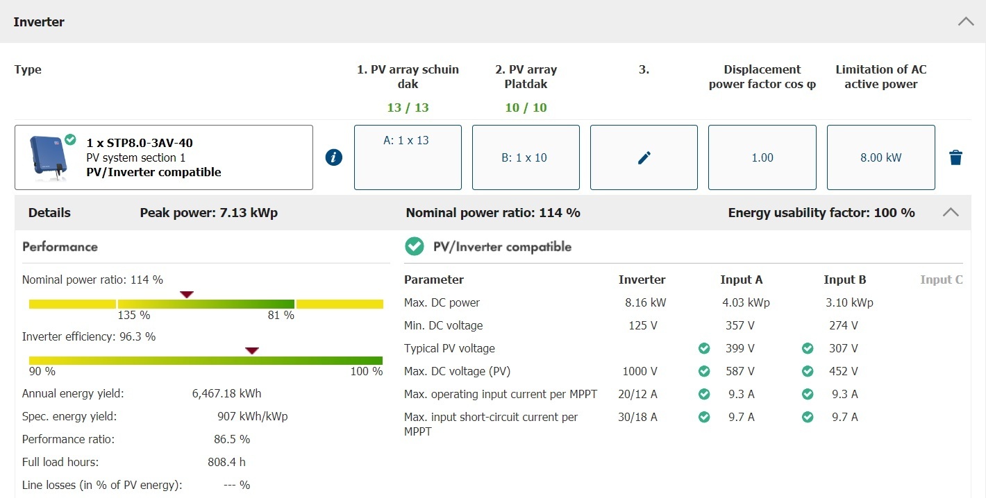 Eventueel kan je voor de panelen op het platte dak panelen van 2.1 meter kiezen. Die leveren iets van 410 Wp !