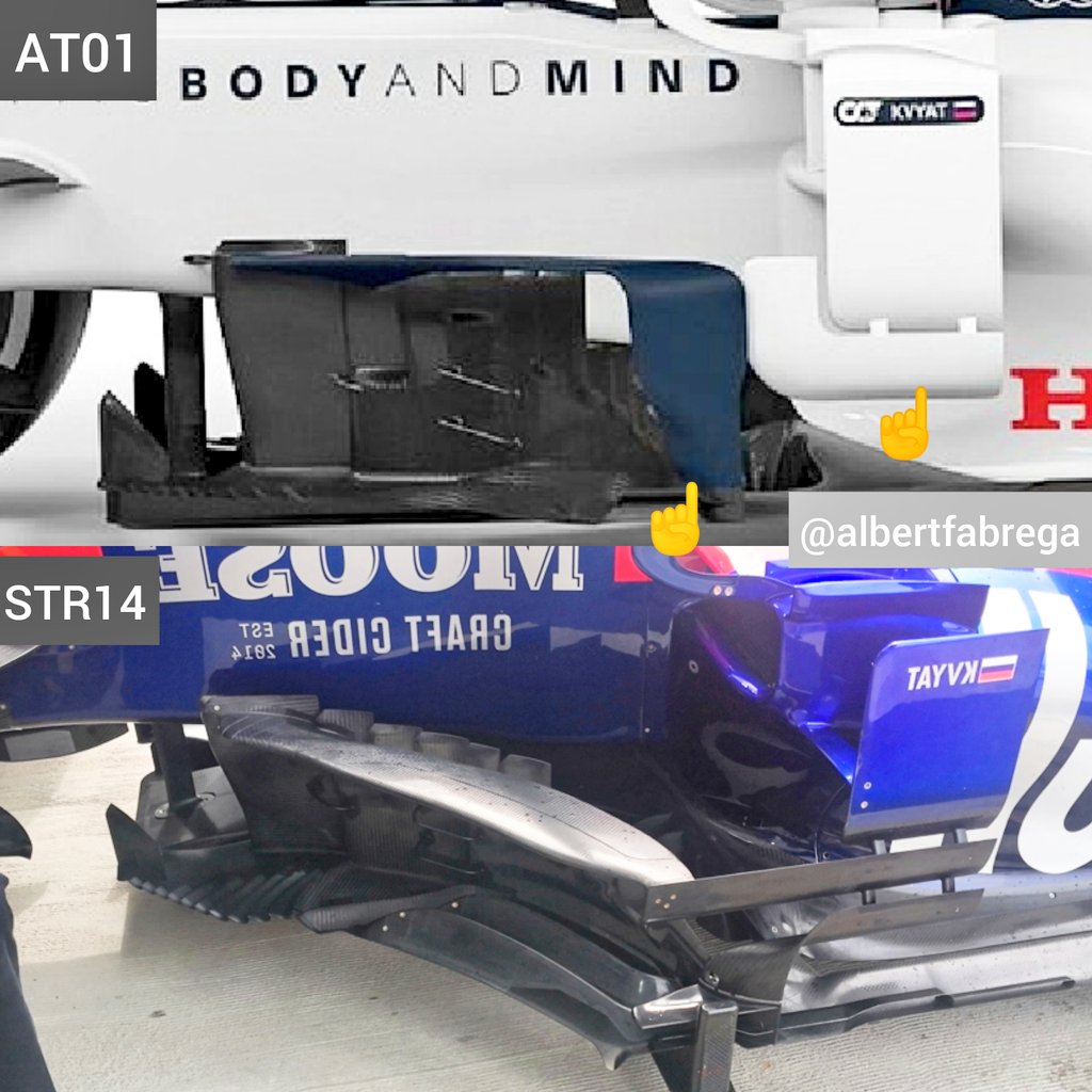 Algunos detalles del @AlphaTauriF1 AT01. Nueva configuración en entradas de pontones y direccionadores laterales, ahora unidos al pontón.