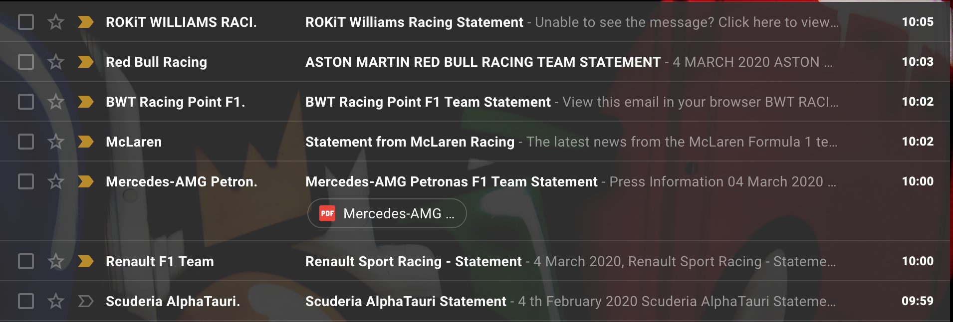 Het feit dat er nu een schikking is wijst er voor mij op dat Ferrari wel degelijk buiten de lijntjes kleurde, maar dat de FIA geen onomstotelijk bewijs had. Je hebt natuurlijk die powerberekeningen waar misschien uit komt dat Ferrari een efficiency van 60% (fictief getal) zou moeten halen om zo te kunnen accelereren, iets dat nagenoeg onmogelijk zal zijn en waarschijnlijk ook nooit gehaald zal worden met dat blok dat ze hebben moeten inleveren. Echter is het niet zo'n simpel bewijs als 'dit moest 10kg wegen, maar het weegt maar 5kg', dus zal door al deze onwaarschijnlijkheden een schikking zijn getroffen. Het probleem is gewoon dat het weer niet naar buiten komt. Laten ze dit wel gewoon zien is het tenminste duidelijk.