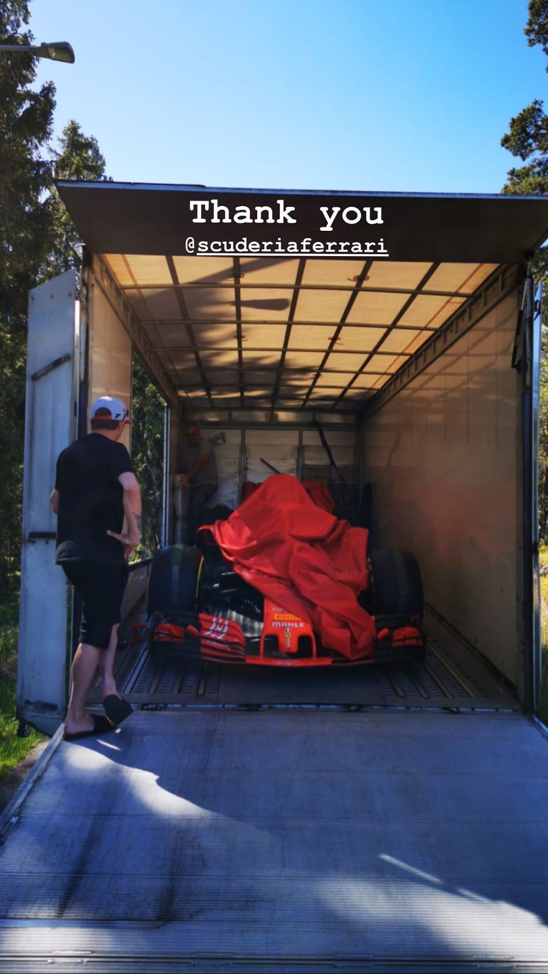 Kimi Raikkonen just received the car he scored his most recent @F1 race victory in, from @ScuderiaFerrari.