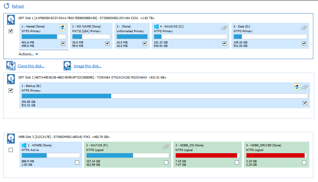 Mijn situatie: Windows 10 Pro 1809 X64 desktop, met 3 interne hd's: