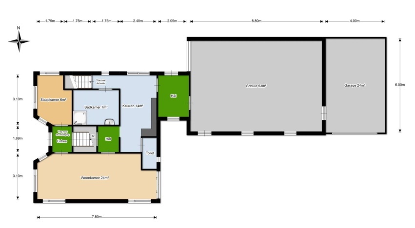 Woonkamer heeft een houten vloer met 40-50cm kruipruimte.