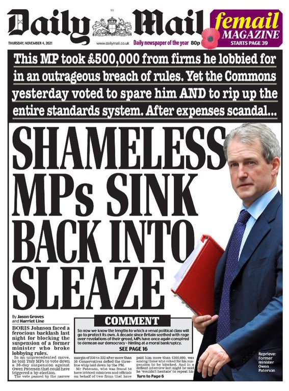 Neem wel nota dat nergens op deze voorpagina wordt vermeldt dat het gaan om een parlementslid van de Conservatieven, daar is een reden voor.gambieter schreef op donderdag 4 november 2021 @ 12:29: