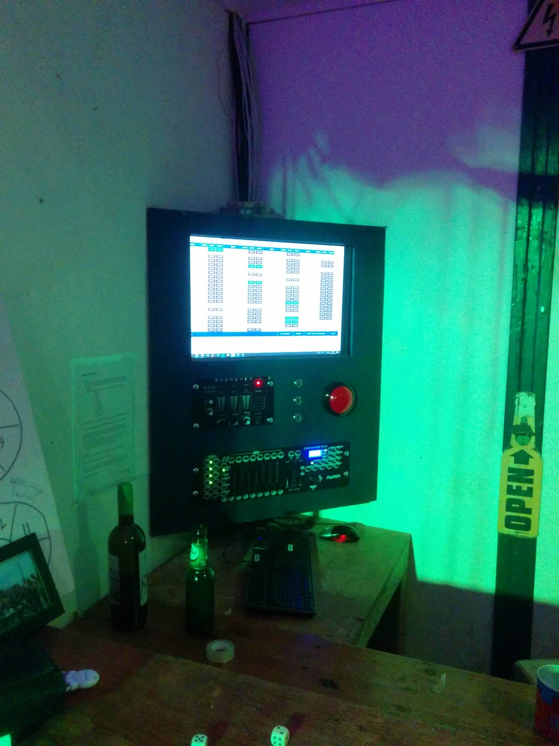 Op de vereniging hebben we een computermeubel met daarop een rode knop. De computer is aangesloten op een mengpaneeltje die weer aangesloten is op de speakers. Het doel is om de rode knop te gebruiken als airhorn (zoals in De Après Skihut in Rotterdam, https://www.youtube.com/watch?v=a_6CZ2JaEuc)