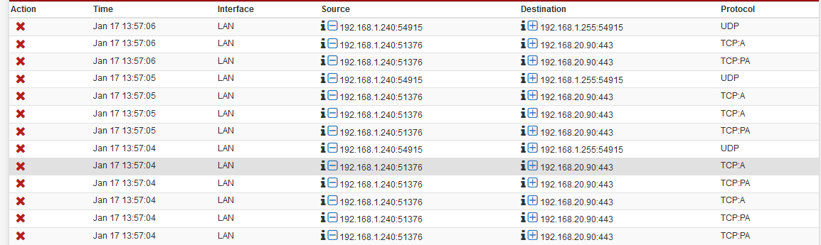 Ik blijf het zo vreemd vinden dat verkeer van LAN naar WAN geen problemen heeft.