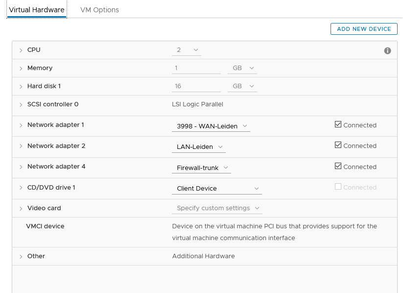 - Ik heb het netwerk weer omgebouwd naar verschillende nic's per vlan