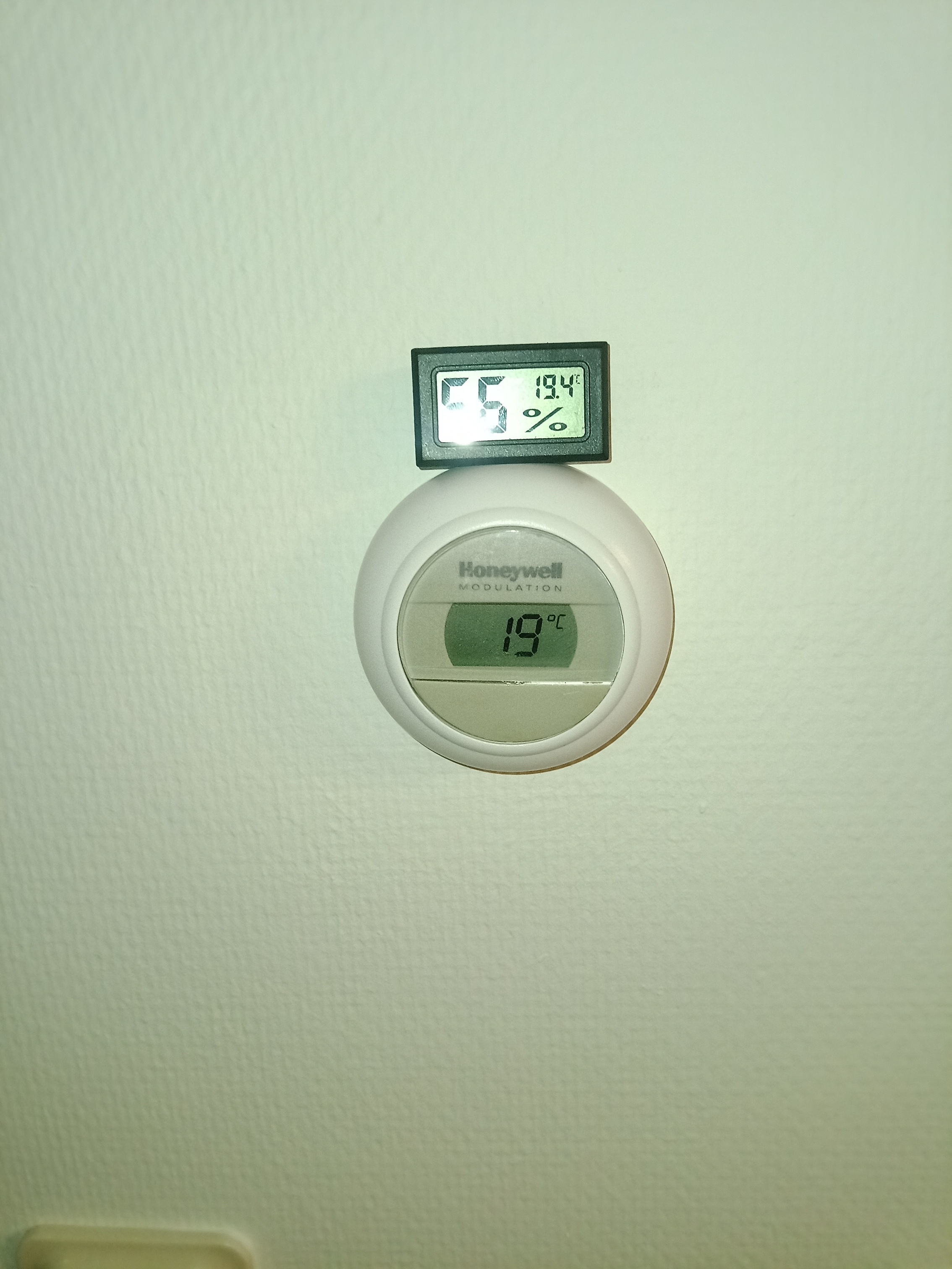 Temperatuur in de gang is ongeveer 1 graad koeler dan woonkamer, en in de bijkeuken 3,5 graden.
