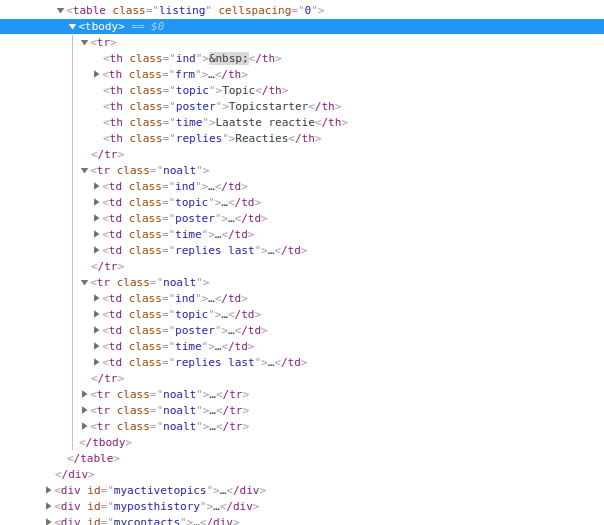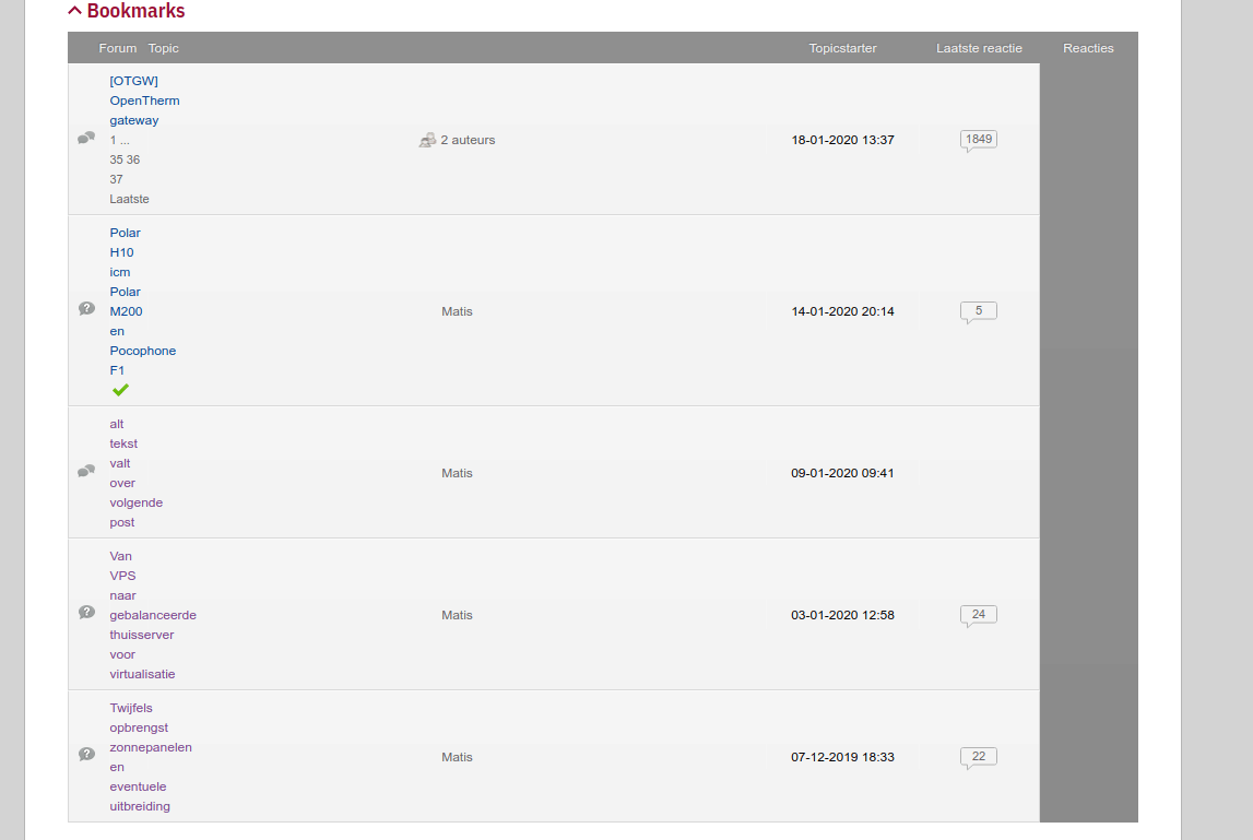 In de MyReact bookmark sectie https://gathering.tweakers.net/forum/myreact mist een kolom in de table body