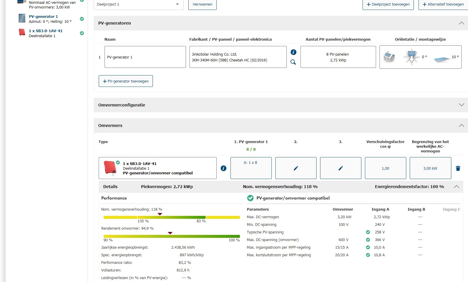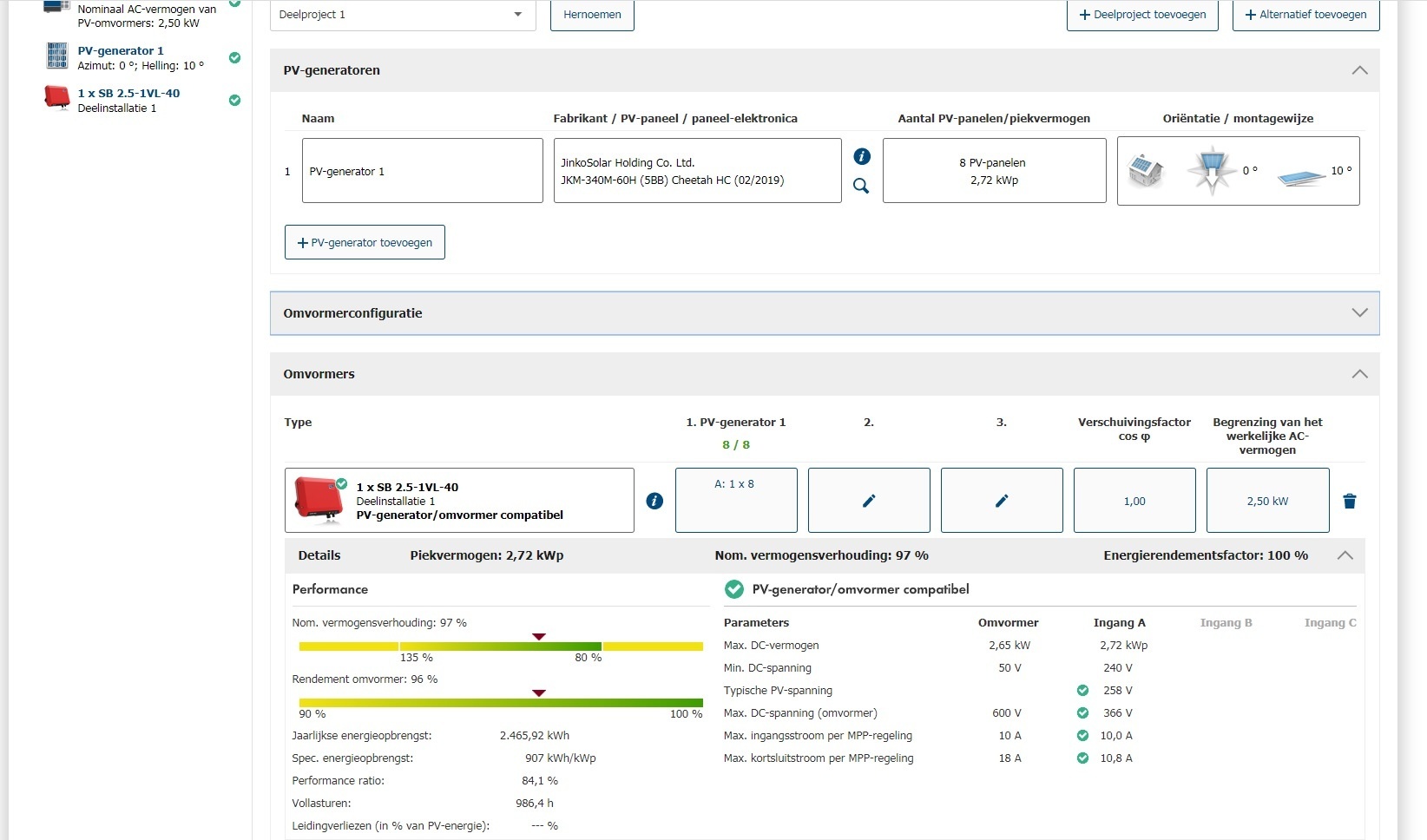 1 omvormer type; SMA Sunny Boy 2.5 is een enkelfase omvormer