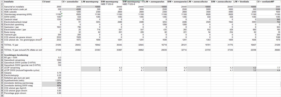 2. Bij alle opties behalve een B/W WP kom ik over 15 jaar gezien onder de streep even duur uit, met beperkte CO2 reductie. Is dit reel, maak ik ergens een rekenfout?