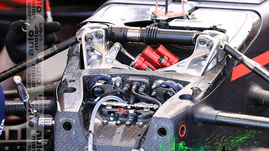 Dit is het dus. Het idee is om de voorwielophanging te verhogen voor extra aerodynamische winst.