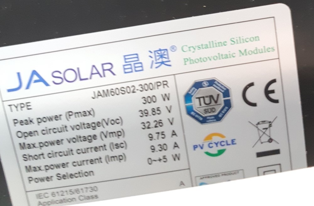 De 5 al aanwezige panelen zijn JA Solar JAM60S02-300/PR deze moeten er dus 9 bij komen.