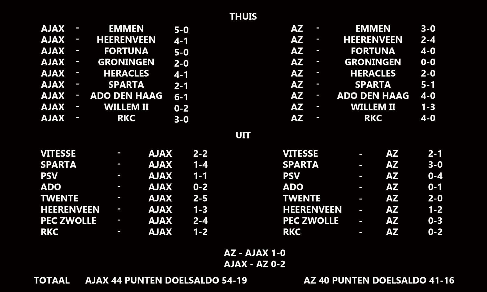 Alsjeblieft een vergelijking met alle wedstrijden die zowel Ajax als AZ hebben gespeeld.