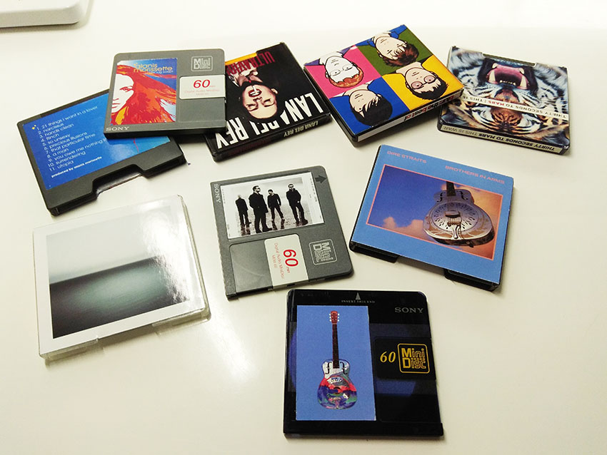 Het ziet er voor mij wel uit als MD’s, maar als iemand die zelf alleen MD’s heeft die er gewoon uit zien als blanco’s, was het eerste wat ik me afvroeg: zijn dat allemaal voorbespeelde, of maak je die hoesjes zelf? Ziet er wel cool uit zo...