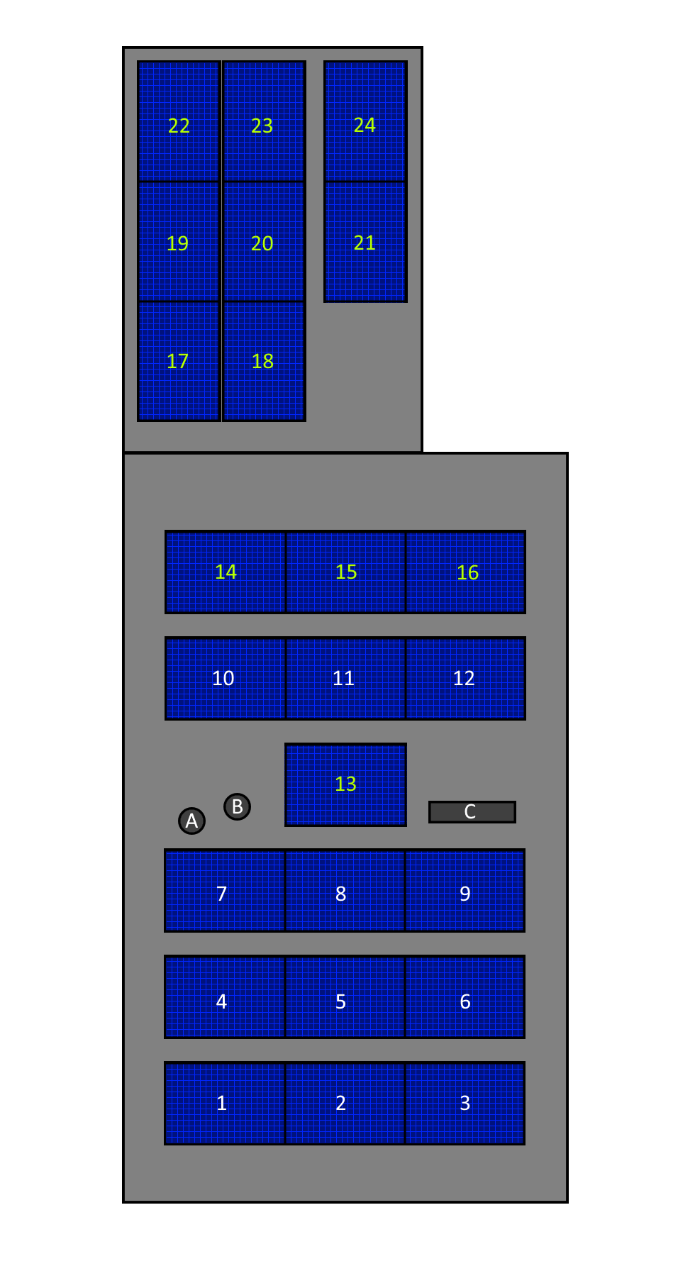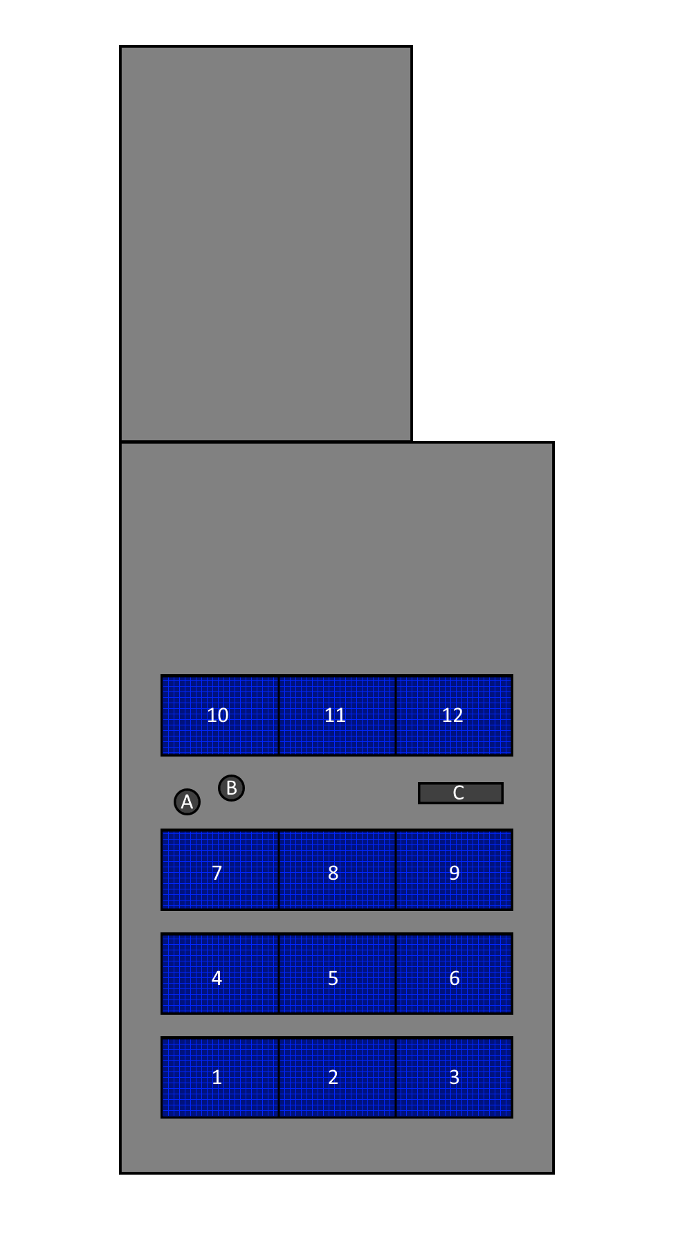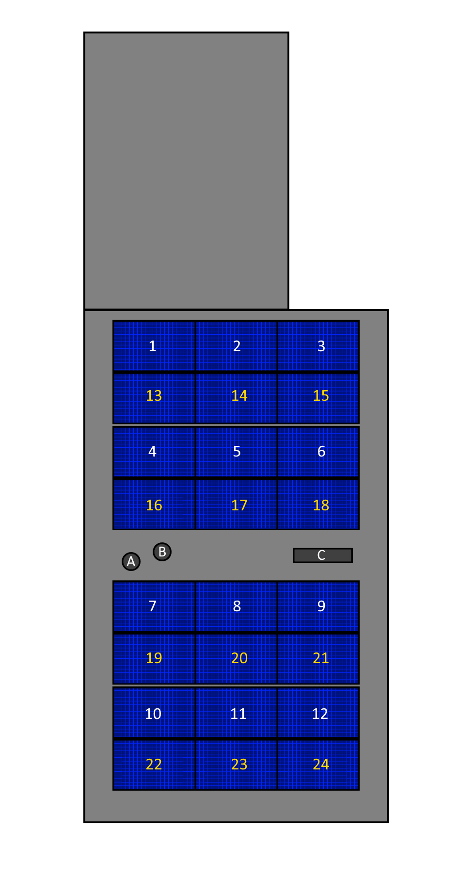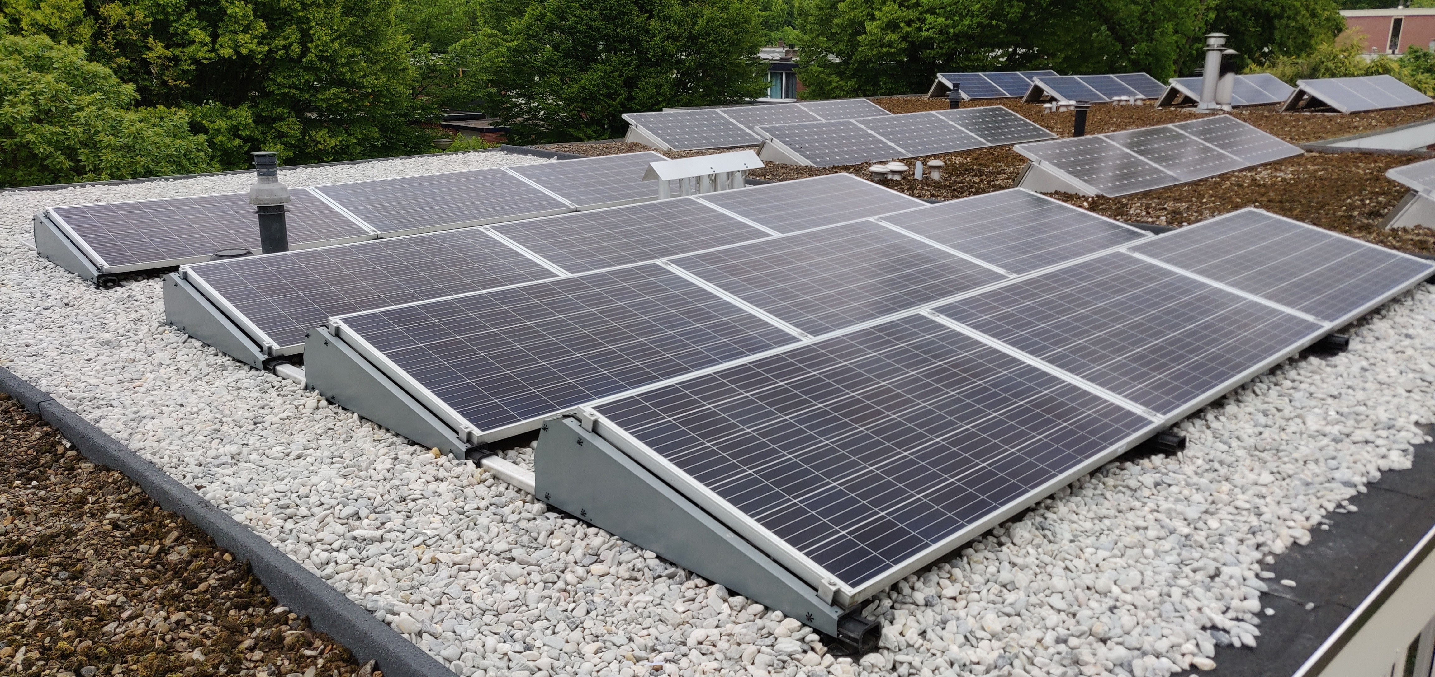 Tussen de panelen 7,8,9 en 10,11,12 staan er wat obstakels op het dak: