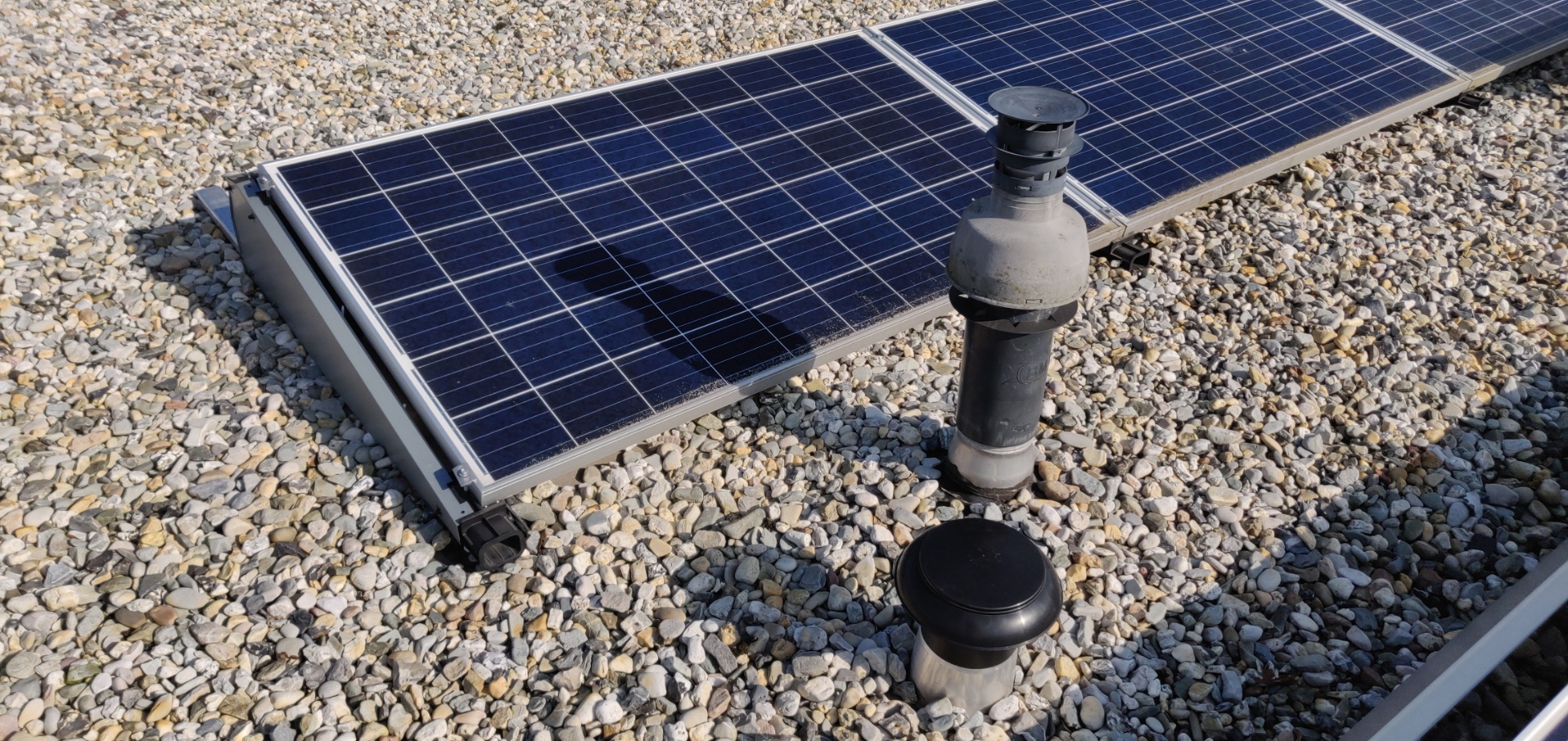 - 1 pijp voor de afvoer van de CV ketel (pijp B, 65cm hoog, zorgt (in ieder geval in dit jaargetijde) voor schaduw op paneel 10.