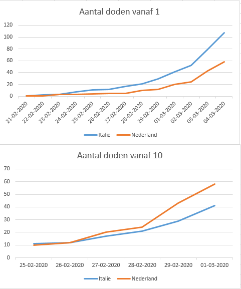 Er wordt hier (en elders in Europa) weinig getest, en dus zijn er een hoop gevallen/doden die het goed zouden kunnen zijn. Opname-/ziekenhuiscijfers zijn dus enorm gebiased door het tekort aan tests, en is het lastig een goed beeld te hebben. In feite is een goede statistiek niet mogelijk in combinatie met door het tekort aan tests veel mogelijke gevallen niet te testen.