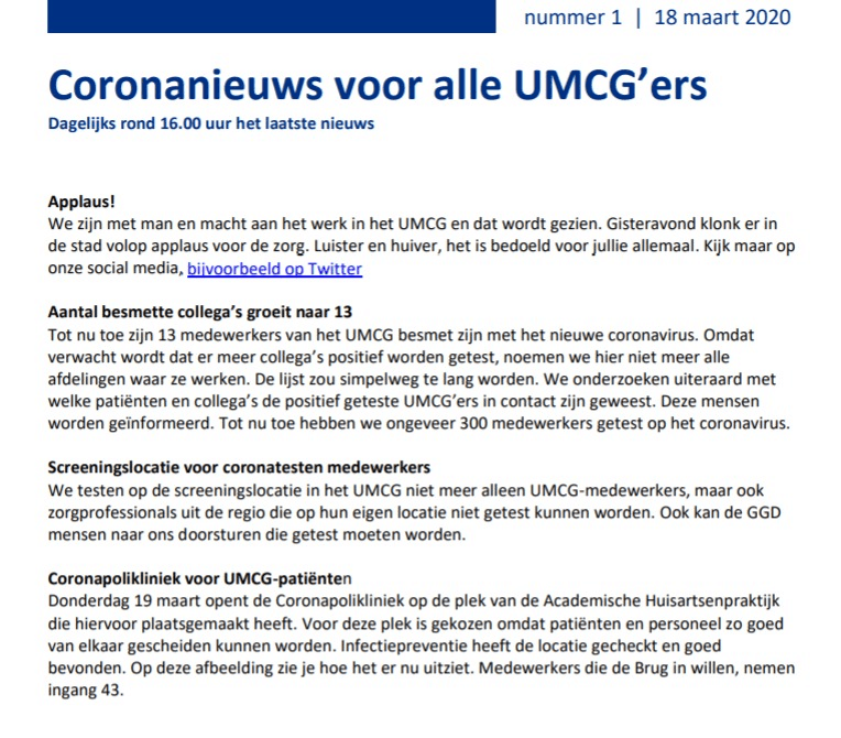 Hoe groot het aantal beschikbare tests in Nederland exact is kan ik niet zeggen, maar in het UMCG bijvoorbeeld ligt de test capaciteit op dit moment rond de 250 per dag, tegenover circa 200 per dag het afgelopen weekend. Opschaling daarin vind plaats en wordt ook veel gebruik van gemaakt. Om potentiële patiënten te testen, en om medewerkers te testen met mogelijke symptomen.
