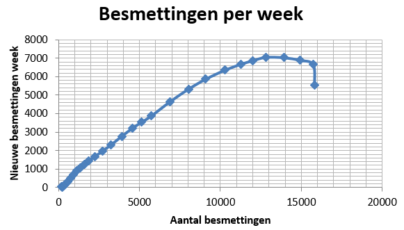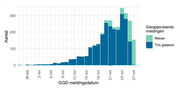 Die meldingen zeggen niks, als er straks meer getest gaat worden gaan die cijfers van meldingen ook weer stijgen.Ook de start cijfers kloppen voor geen meter. In het begin werden alleen mensen uit Corona-gebieden getest terwijl het al lang veel breder actief was in Nederland natuurlijk.