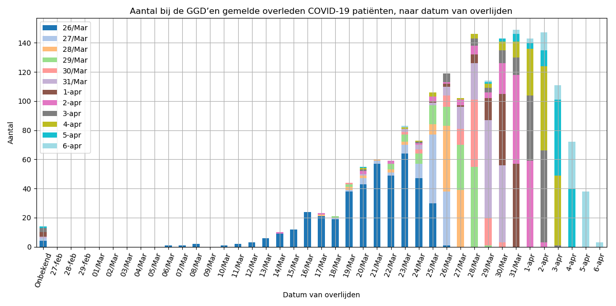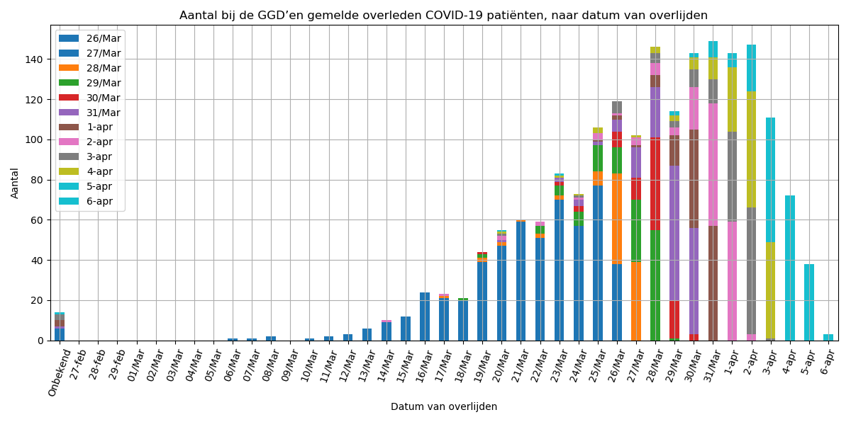 De grafieken zijn heel powerful. Alleen: de kleuren zou je niet imho met data als legenda moeten doen, maar met een relatieve tijdas.Baldertt schreef op maandag 6 april 2020 @ 16:22: