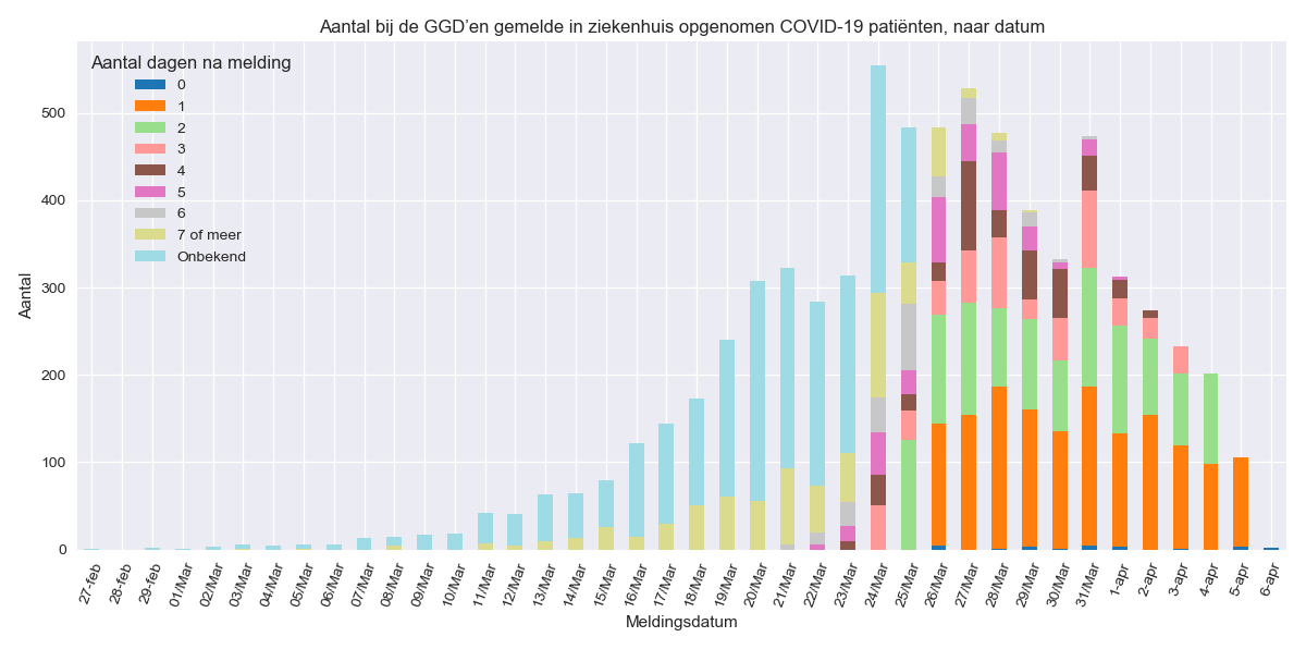 Aantal ziekenhuisopnames lijkt te convergeren na 5-6 dagen (soms nog wel meer)