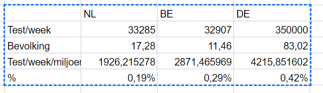 Gelijkaardig aantal tests dus gezien de bevolking in nederland een pak minder.