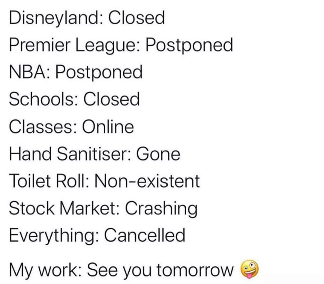 Ik ben echter wél een collega die ook kan bijspringen bij het vitale gedeelte van het bedrijf. Maar laat mij vooral tussen potentiële geïnfecteerde collegae werken zodat ik dat niet kan wanneer het nodig zou blijken.