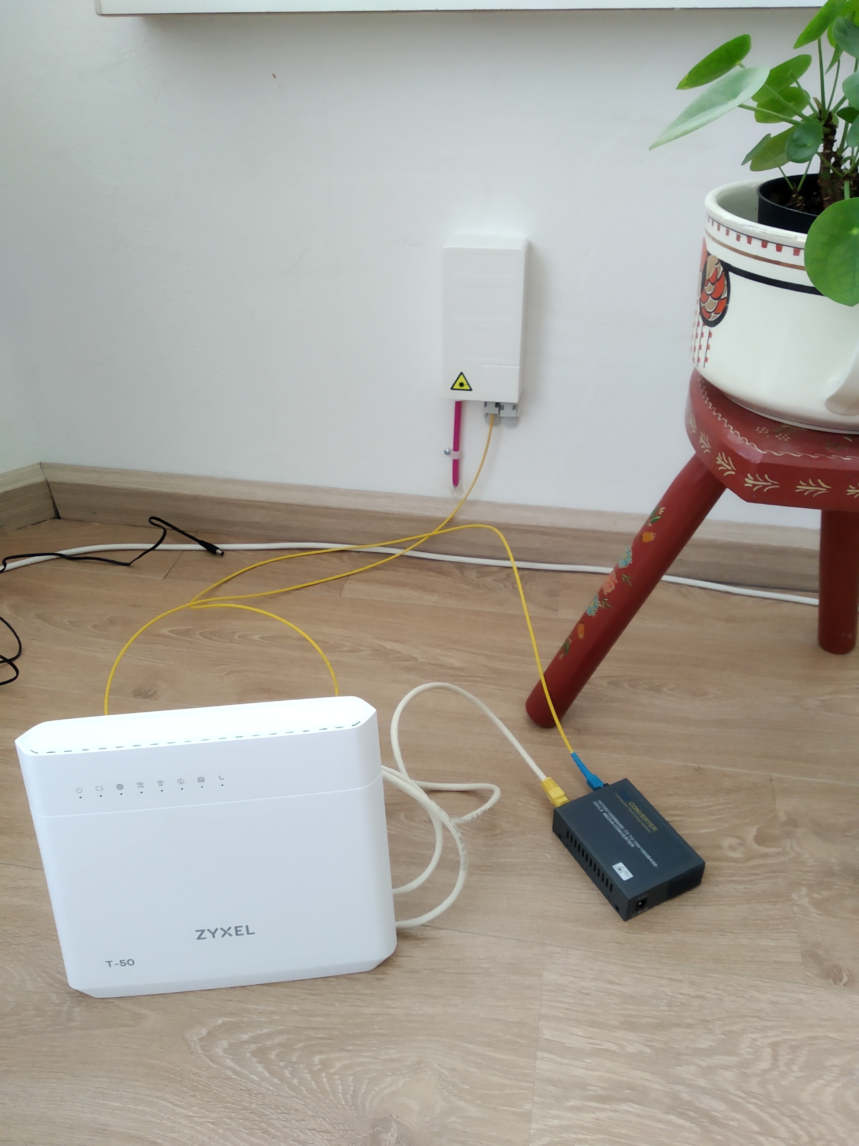 Een paar dagen geleden is er een glasvezelverbinding aangesloten in mijn woning. Helaas heeft T-Mobile besloten om de aansluiting op een heel onhandige locatie te plaatsen.