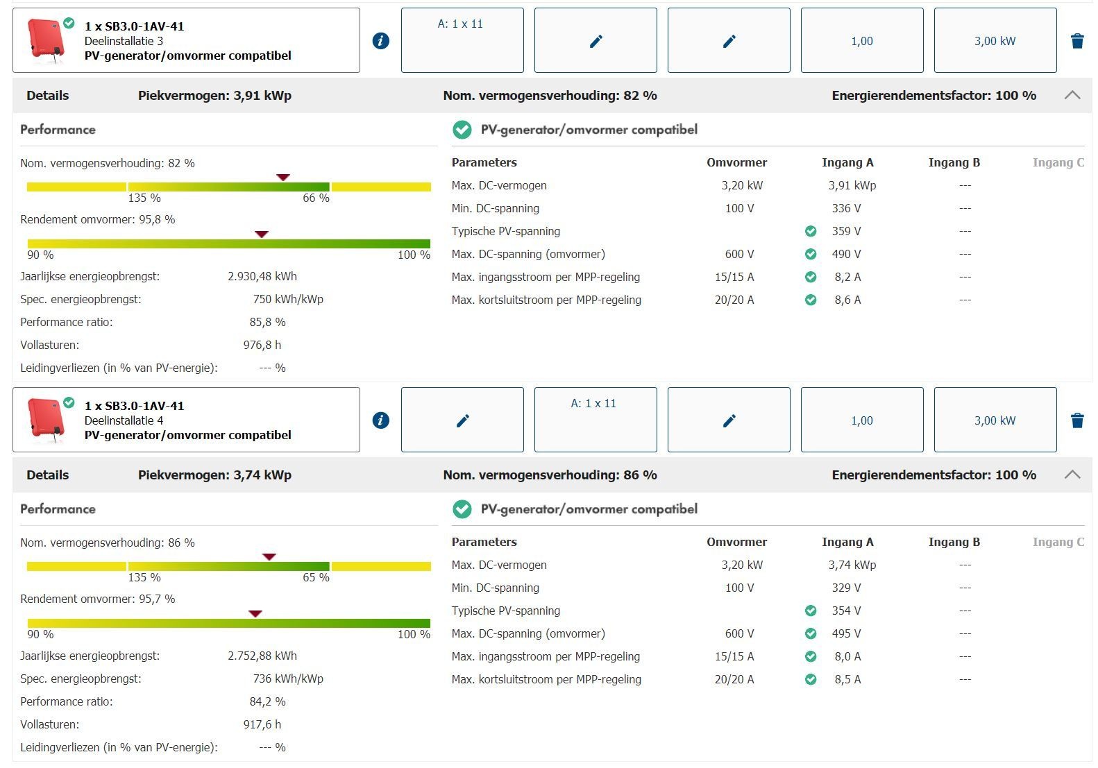Goodwe Ez designer kent beide panelen helaas niet. Goodwe staat 30% overdimensionering toe. Dit is 3900 terwijl 11x355 3905 is. Probleem?