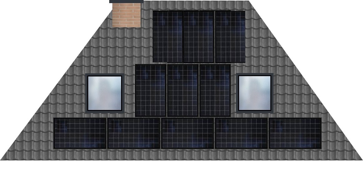 Wellicht dat 1 extra paneel nog zou kunnen onder schoorsteen wat niet echt fraai staat wellicht. Ook moet er gelijk een duurdere omvormer komen (12 panelen gaan over de max dc spanning van 500 van de gw3000-xs heen), extra montagemateriaal € 55 e.d. waardoor de terugverdientijd toeneemt dus 11 lijkt wel de sweet spot.