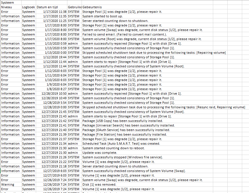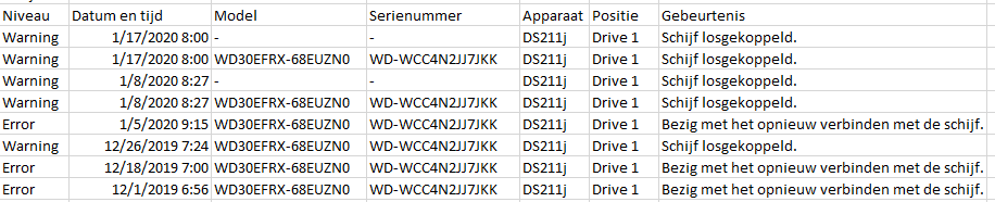 Enige tijd geleden is één van de WD RED 3TB HDs in mijn Synology DS211j vastgelopen. Deze vervolgens dmv de Synology software gerepareerd waarna hij het weer circa een week heeft volgehouden. Vervolgens nogmaals gerepareerd maar na een week wederom vastgelopen. Toen de schijf dmv Synology secure erase gewist en opgestuurd naar de leverancier, aangezien de schijf nog binnen de fabrieksgarantie is.
