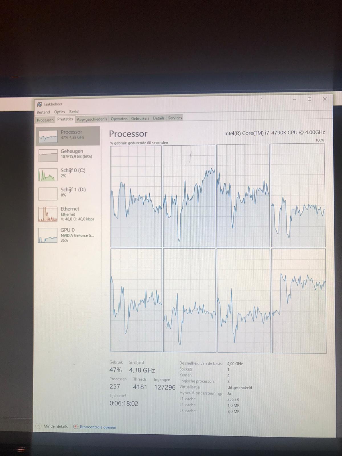 indien nodig links onder op meer details en dan het 2e tabblad open zetten. Dan kun je in ieder geval al zien welke het meest belast wordt ingame. Ik had met mijn 4670k al dat die de bottleneck wat met een 1070ti