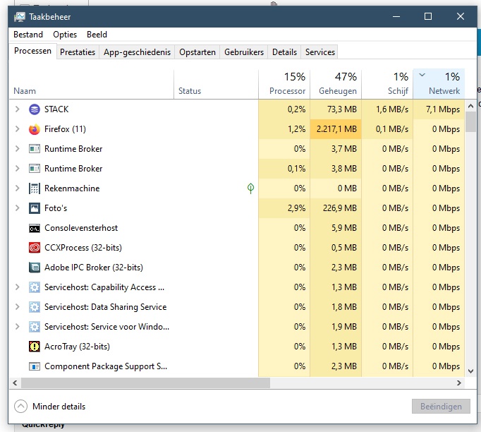 BIj de andere hops zie je grote variatie in de responsetijd. Ik ben benieuwd of variaties op het lokale netwerk een rol spelen. Laat eens een continue ping naar je router lopen en kijk of je daar grote variaties in ziet: ping 192.168.2.254 -t .
