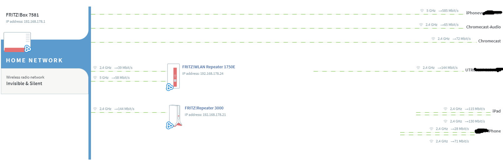 Wat er echter gebeurd is dat Wifi apparaten soms verbinden met de slechte 7390 (en dus een slome connectie hebben) ipv dat ze verbinden met de 1750of 7581. Zie overzicht:
