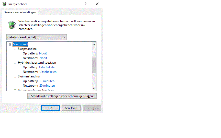 Vaak als ik ga slapen zet ik downloads aan. Maar als ik in de ochtend wakker wordt staat mijn laptop altijd in slaapstand. Terwijl ik die opties 100% heb uitgezet, zie afbeelding. Ik kan nergens in de instellingen vinden waarom hij uitvalt. Op mijn vorige laptop (hp met windows 8.1) had ik dit probleem nooit en viel hij nooit uit.