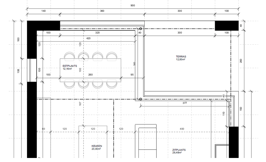 Het terras was al met het idee in het achterhoofd dat we de zon (oververhitting) wat willen vermijden.