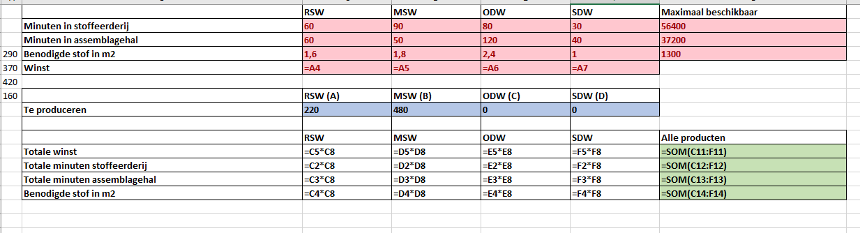 Voor een schoolopdracht moet ik een linear programmeringsprobleem oplossen door middel van de excel solver. Nu ben ik al een tijdje bezig met deze opdracht maar ik kom er niet uit.