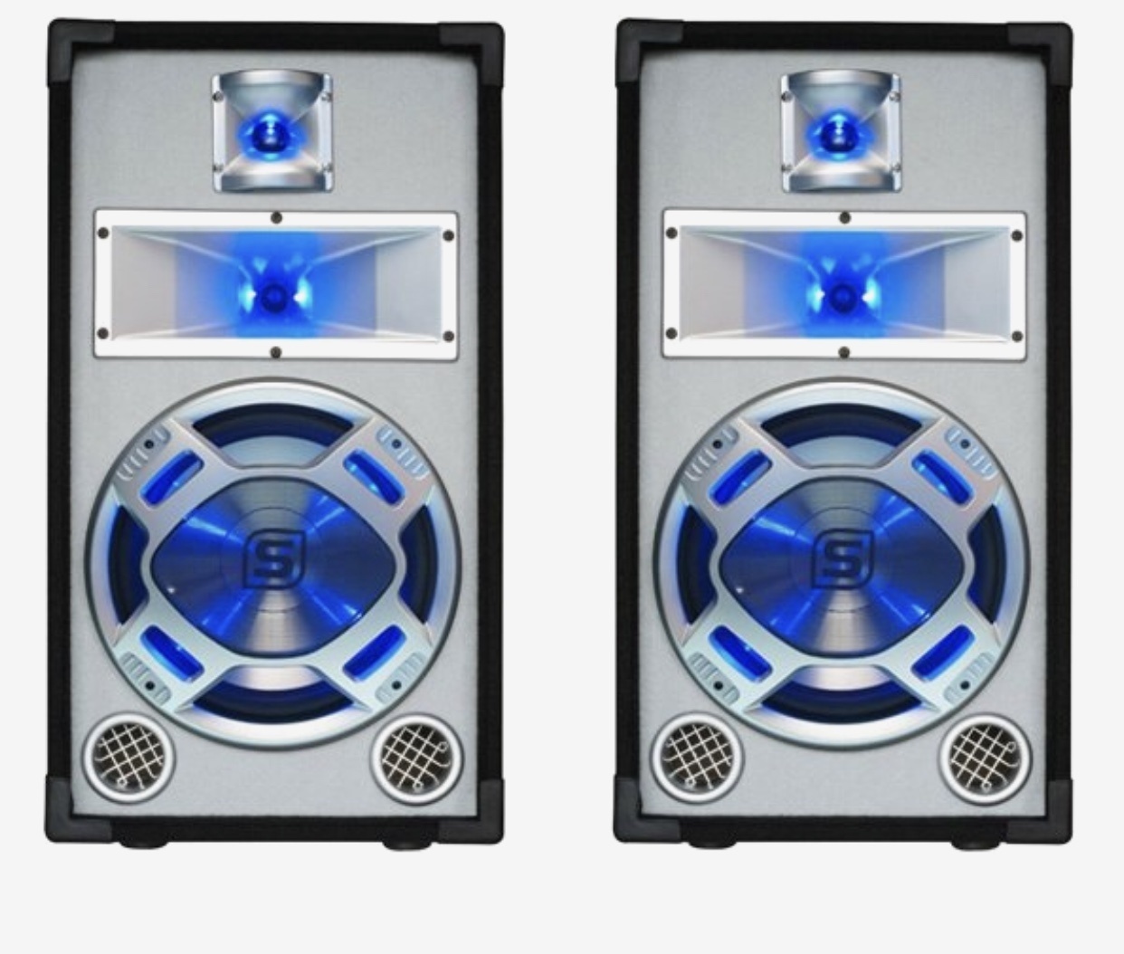 De speakers zijn PA Speakers met disco led(al doet de led het niet, van MaxiAxi. De versterker zit aangesloten ook op het digitale tv kastje van kpn.