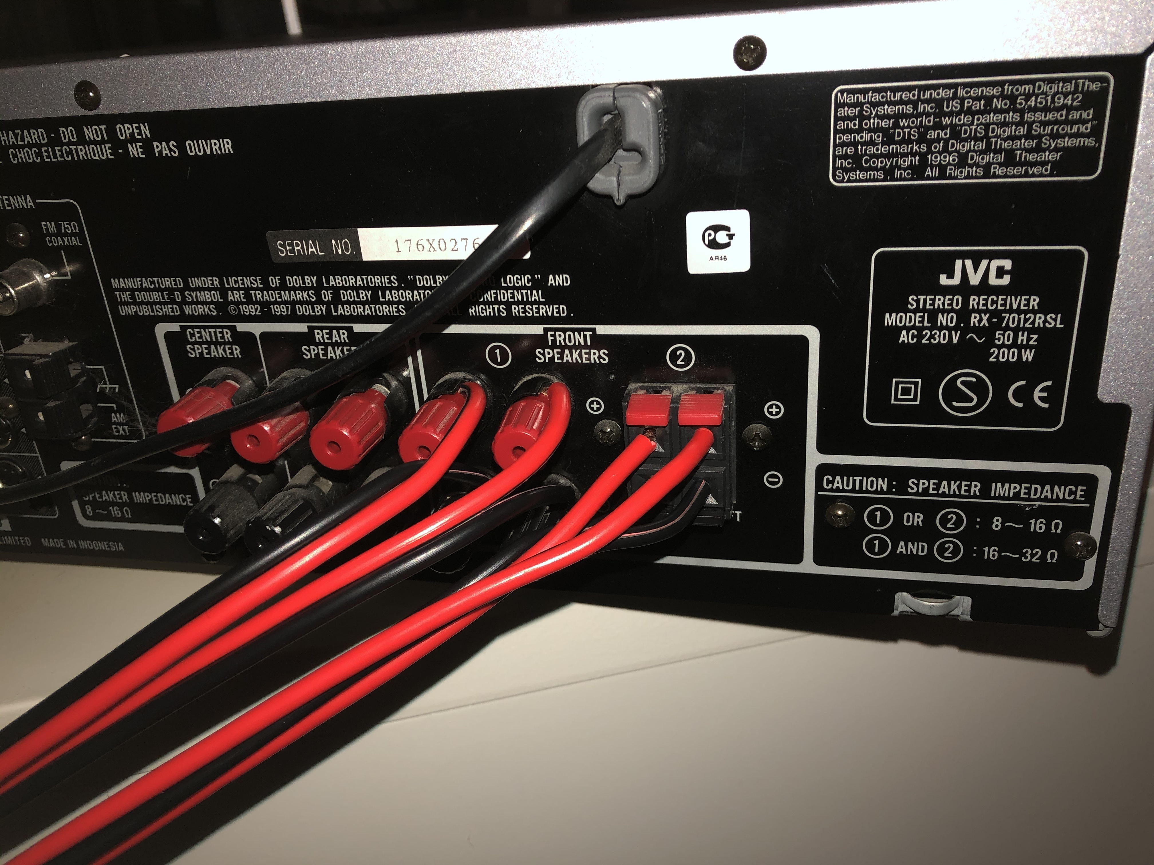 Ik ben in de handleiding bezig geweest van de JVC Receiver en zou moeten kunnen dat ik beide front speakers moet kunnen gebruiken tegelijkertijd. Dbs staat ook niet aan dus dat kan het niet wezen dat het gemute word. Voor de rest deden de oude speakers het wel. Maar deze zaten met 2 op 1 kanaal met 4 insteek punten voor speakerdraad. Terwijl ik nu per box 4 draden heb ipv 2. Zie foto’s.