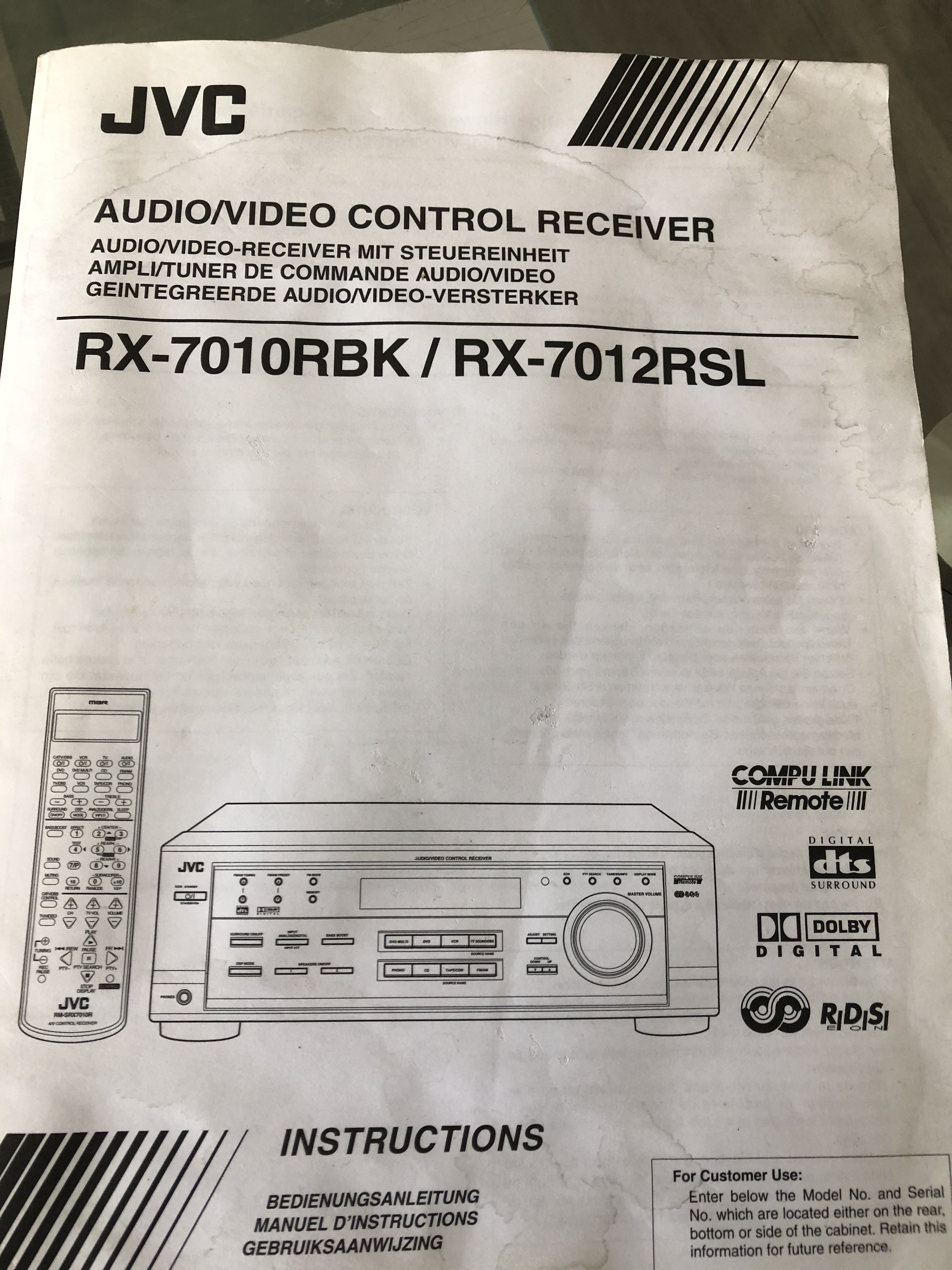 De versterker is een JVC RX 7012R AV Receiver.